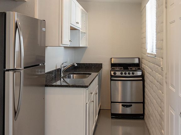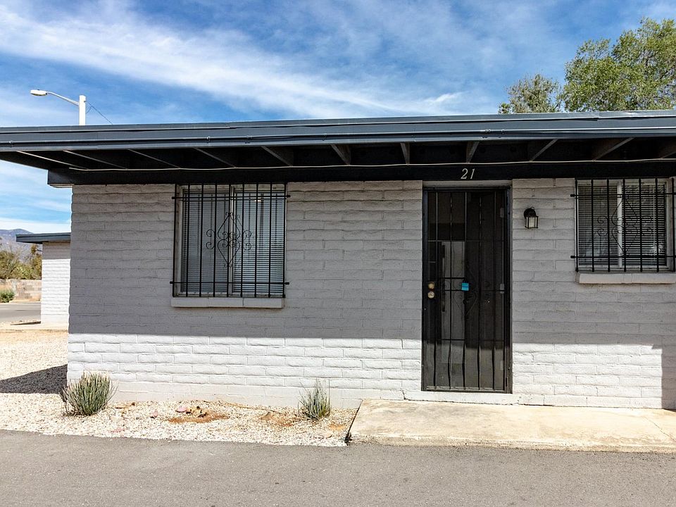 Fully gated community that has comfort and luxury combined. April 18, 2020, update, we have accepted an application for this apartment but we have another identical one coming available very soon. It is unit #09. We are showing apartments after the prospective renter has viewed the 3D tour and given us the name listed on the refrigerator. You can also apply online. We do not require that you tour the apartment. We guarantee that the photos and 3D tours are of the current available unit, are recent, and are accurate. Twin Palms Apartments were renovated in 2019 with luxurious granite countertops, stainless steel appliances including a gas stove. Enjoy the bright apartment with new subway tiling in the bathroom, LED recessed lighting, ceiling fans, and easy care custom concrete flooring. Each apartment has security doors, features custom colors, blinds, and a dining area. These homes are one story and feature a 24 hour onsite laundry, additional storage options, plenty of parking, and BBQ's in the large courtyard. It is pet friendly with a few breed restrictions. Great location just moments away from the Tucson Mall, Downtown Tucson, Shopping, U of A and I-10. This is the apartment that you have been waiting for. Contact us today! All photos and 3D tours are guaranteed to be recent and of the actual unit listed for rent. Merritt Realty Management is licensed with Arizona Department of Real Estate and is an Equal Opportunity Housing provider. Tenant pays gas, electric, and portion of water.