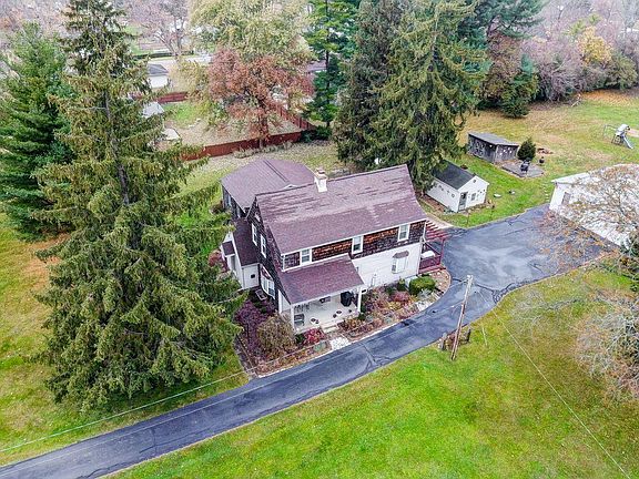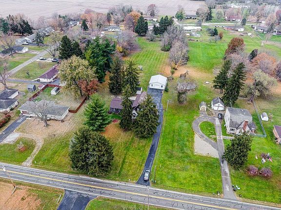 Fantastic 2 acre property! Special features for everyone-beautiful ''Chefs'' kitchen with an abundance of Cherry cabinetry, five burner gas cooktop, double wall ovens and a magnificent island with seating to watch all the cooking action! Open kitchen and dining area great for entertaining. Original hardwood floors in the dining room and into the living room with cozy gas log fireplace. All season enclosure currently used as a study is directly off the first floor bedroom which has been used as a family room. Upper level master bedroom is spacious and has an extra large window overlooking the rear yard with mature trees. Also included with this wonderful property is the 30x32 pole building constructed in 2003, a 12x16 storage building and 12x16 utility shed. This is truly a great home!