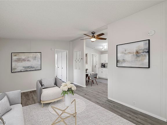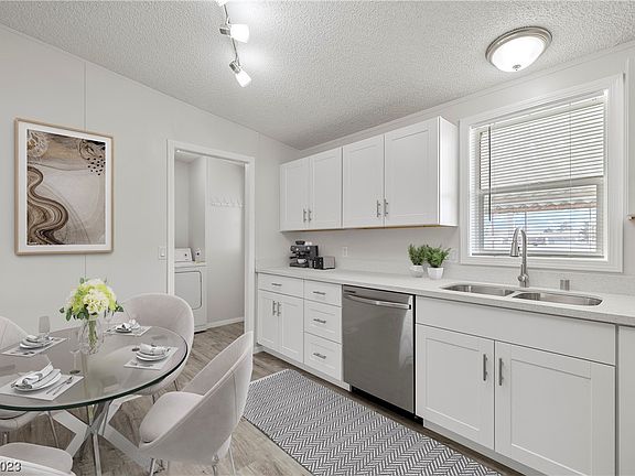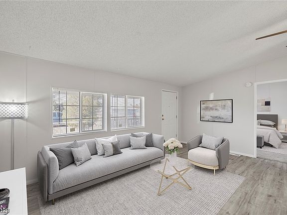 This super cute, MOVE IN READY home was built in 1996 and features 3 bedrooms ,2 full baths spacious eat in kitchen, new Behr paint inside and out, new flooring, new quartz kitchen countertops, custom cabinets, new track lighting, double stainless sink, new stainless dishwasher and cooktop stove, new vanities in the bathrooms, make up lights and new blinds. Washer and dryer are left at as a courtesy with no warranty, but they are functional. 4 ft chain link fence with sliding gate. 14x10 storage shed and covered front and rear patios. Family friendly, common clubhouse and swimming pool.
