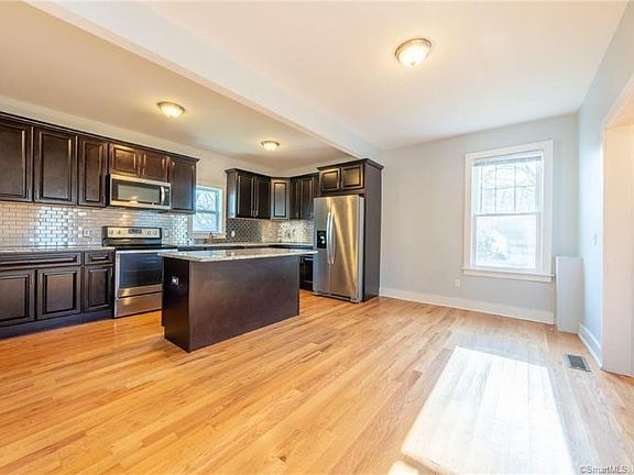 This home has undergone a complete renovation five years ago. It's beautiful from top to bottom. Three bedrooms on the upper level and the possibility of a fourth on the first floor. The kitchen is complete with stainless steel appliances and a large island. Two full baths and a first floor laundry room make for convenient living. The town has it listed as seven rooms but when renovated it was redesigned to six rooms, making a very spacious kitchen and dining area. The hardwood floors on the first floor were refinished last week.