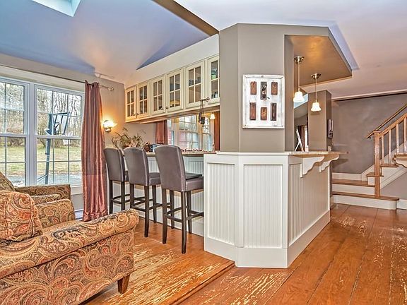 So much space inside and out in this charming colonial full of character and modern amenities down the road from the Antique center entrance! The layout maximizes the square footage and creates an open feel with a clear distinction of each room. Enjoy cooking and entertaining in this kitchen filled with cabinets, granite countertops, gas range, large pantry, and plenty of seating options with the open dining room. The parlor room with beautiful hardwood floors offers another comfortable relaxing or gathering option. A huge family room is perfectly set right off the kitchen. There are 2 staircases leading up to 4 bedrooms with lots of hardwood floors and tastefully designed built in cabinets and shelves. Each floor has a beautiful and spacious full bath. Plenty of hardwood floors and built ins, walk up attic, and full basement! Property includes 9 acres of former pasture (partially cleared), a large 2-stall antique barn and a 4-car garage. Minutes to rt 20 and Mass Pike! Great schools!