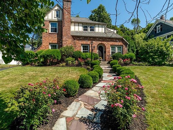 Wonderful brick & stucco 8 room, 3 bedroom Tudor has lots of charm & character. Many updates include newer slate impression roof, windows, Chapdelaine kitchen w/ granite counters, subway tile & stainless appliances, double garage door, sprinkler system, and finished great room/guest room space in lower level. 1st floor offers beautiful remodeled kitchen, split staircase, formal dining room, formal living room w/ fireplace, large family room & home office or play area w/ gleaming hardwood floors thru-out. Master BR features large walk-in closet that could be converted to private master bath. New Since 2018 APO - gutters, full interior paint, 60 gallon hot water tank (lifetime warranty), carpet in finished basement, Back living room exterior door new (Marvin Clad) on order, Entire driveway resealed (good for 3-5 years), ceiling fan in family room & stair carpet runner. Attractive fenced in back yard w/paver patio and mature landscaping completes this incredible package. A must see home!