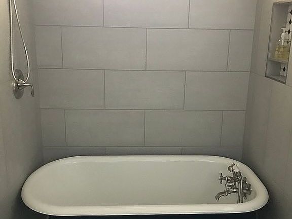 Upscale totally renovated, open and bright home with a view of downtown Asheville. Kitchen has an island and all brand new LG Appliances, including a double oven. Master bedroom with ensuite bath, and a spacious walked in closet. It also has it's own private entrance. 2nd Bathroom has refinished original 1918 Clawfoot tub in a shower space. Laundry hook up space with an extra 31sq ft of flex space room for use as an office, laundry or walk-in pantry. Big semi covered walk out patio from living area. Walking distance from AB Tech or Mission Hospital. Under patio area to park 2 cars. Nice big lot