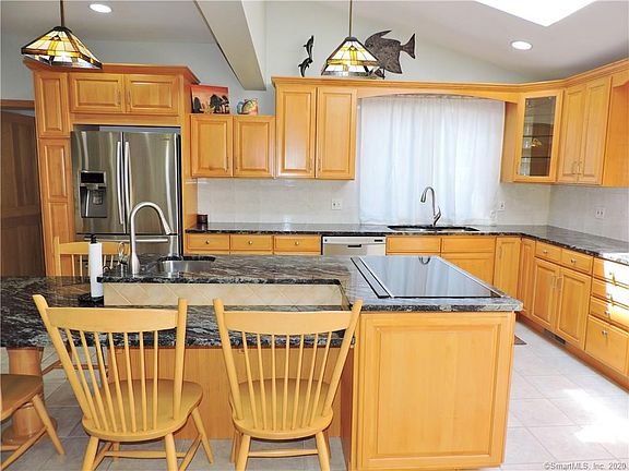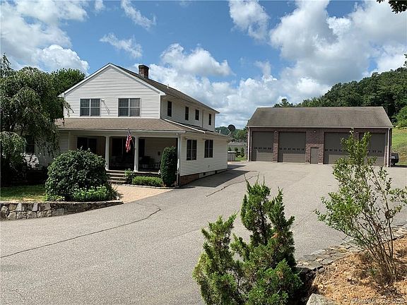 Rare Find and Motivated Seller! This amazing property is a great space for a contractor's business and more offering a 4 bay 3240 SF masonry garage with 2 - 12 x 14 and 2 - 10 x 14 overhead doors also a portable drive-on car lift. Built in 2002, it has room for your car collection, RV, boats, projects or business. Complete with a spacious office, storage room, full bath, central air and radiant heat in the floor for your creature comforts. Currently zoned Residential but could easily be converted to Commercial. Convenient to Rt. 8 entrance and exit. As a bonus the 5 Bedroom, 3 full bath 3300 sf Colonial was rebuilt from the foundation up in 1999. At the entrance is welcoming a covered stone porch, leading to a bright open kitchen with granite counters, loads of cabinets and a large island with a prep sink and cook top. The open dining area leads to the living room with a gas fireplace which opens to a beautiful vaulted sunroom. There are also 2 bedrooms, 2 full baths and a laundry room on the first floor, all which have 10' ceilings. On the second floor is a huge master bedroom suite, 2 more bedrooms and a quiet sitting area. The back yard has an above ground pool with a deck, pool house and paver patio for your entertaining. Gorgeous stone walls line the driveway and parking area. Must be seen to appreciate!