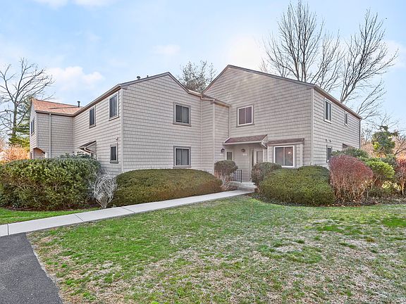 Fabulous, beautifully remodeled 2 bed 2.5 bath "Far Mill" townhouse, (the largest model available). Truly turn-key with tasteful interior updating, gleaming oak hardwood floors and the focal point of the living/great room with wood-burning fireplace! This, along with attractive moldings, fitted bedroom closets, quartz kitchen countertops, tiled backsplash & stainless steel appliances. Plus, newer water heater, (gas fired), front storm door and thermo-paned replacements windows... here, a most desirable setting showcases this private end unit with rear deck and a finished lower level with slider walkout and separate service door entry. Centrally sited with two "assigned" no steps front door parking spaces. Easy access in and out of the complex to main/commuter roads and a quick walk to the association pool, clubhouse, playground and tennis courts...Hurry!