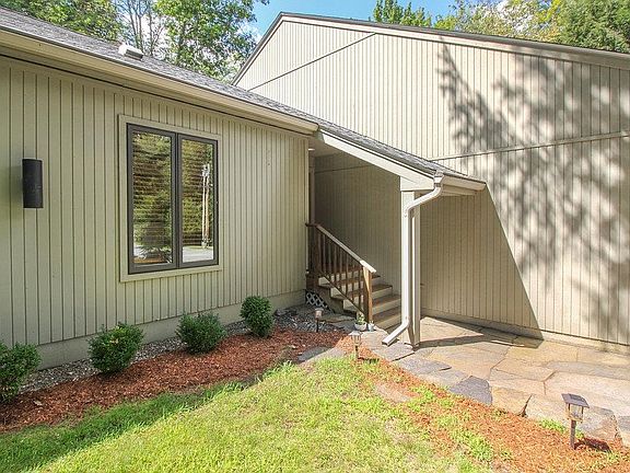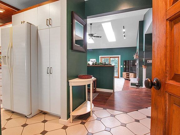 Mature landscaping and a custom stone walkway welcome you to this lovely, single-level home. Step in and experience the updated, midcentury vibes. Although the home was constructed in 1991, the nod to midcentury design is clear. The open floor plan, a hallmark of midcentury design, seamlessly fuses the living and dining rooms which encourages togetherness and has easy, open flow to the kitchen. Sunlight pours through windows and skylights, casting a warm glow on the elements, such as a sunken living room, that define this era. Access from the living room to the deck provides a perfect spot to relax in the peace and quiet of backyard. With the double doors off of the living room, the primary suite has a two-sided fireplace with sitting area and additional access to the deck along with a large walk-in closet. On the opposite side of the home are two well-proportioned bedrooms each with its own walk-in closet and a shared full bath. A full unfinished basement with side yard access holds untapped potential for further expansion—a canvas awaiting your creative touch. The sellers made a significant investment in a new roof along with many other cosmetic updates including new floors, painting, and fixtures. Ideally located in the sought-after King's Grant neighborhood, this home provides the benefits of neighborhood living yet with plenty of privacy. Intriguing and brimming with potential, this home not only captures the midcentury spirit but invites you to add to the story.