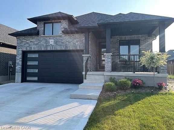 Beautifully maintained, just over 2-year-old brick bungalow offering modern style and functional living. This home features a concrete double-wide driveway and a bright open-concept kitchen, living and dining area - perfect for everyday living and entertaining. Hardwood flooring flows throughout the main level, complemented by quartz countertops and a spacious kitchen island, while upgraded stainless steel appliances add a sleek, contemporary touch. The living room offers a walkout to a covered deck, extending your living space outdoors. The basement boasts impressive 9-foot ceilings and includes a finished washroom, providing excellent potential for additional living or recreational space. Additional features include central air conditioning and quality finishes throughout. Conveniently located in the heart of the tri-Cities, with easy access to Kitchener, Cambridge, Guelph, and Waterloo, this well-maintained home showcases modern finishes and offers a fantastic opportunity to own a newer bungalow with thoughtful upgrades and timeless appeal.