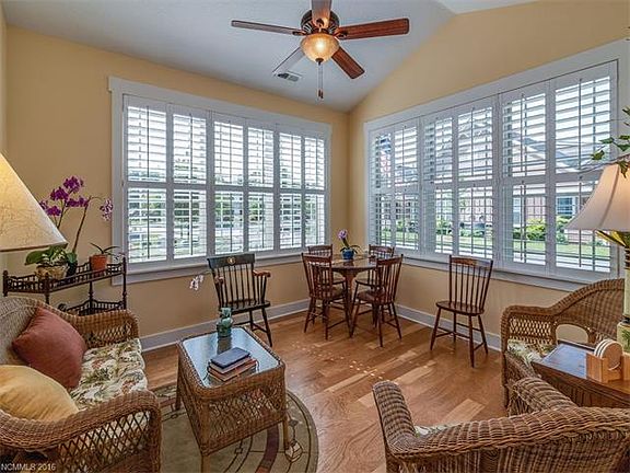 Easy main floor living in conveniently located community. Popular Olmsted model includes Master, Guest suite, Office, Sunroom ALL on Main level. Large, bright Kitchen has pantry, granite, island and breakfast bar, solar tube and skylight. Beautiful Plantation Shutters throughout. Large upstairs suite or hobby room. New wide plank oak flooring. Energy Star Certified with Tran air cleaner system. Truly pristine condition and move in ready. A must see for easy Townhome living. Priced to sell.
