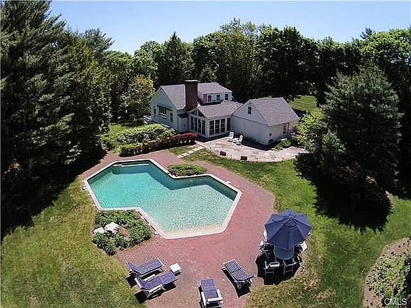 This beautifully updated antique farmhouse is situated on 3.3 park-like acres minutes from Westport's Main Street. Spread over 3 living levels with great entertaining flow, this lovely home has an updated kitchen and baths, wide-plank pine floors, vaulted living room with fireplace and shiplap walls, solarium dining room, and deck complete with Dutch door and retractable canopy. Main floor master includes a huge walk-in steam shower and custom closet. On the upper level there are 2 bedrooms, a full bath and charming built-ins. The lower level has a large family-room, gym area, an additional full bath and 4th bedroom that walk out to a beautifully landscaped private garden, perfect for guests or in-laws. Two car garage with a full attic. Outdoor features include a heated gunite pool, all-weather sport court, playground, walking trail, and even a campground area with log benches and fire pit. Property is fully fenced and planted with perennials for easy maintenance and year-round beauty.
