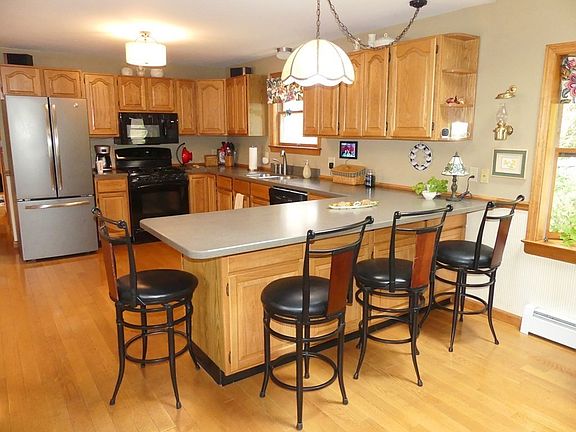 Located in a great neighborhood at the end of a cul de sac on almost an acre of land, this beautiful home has been lovingly maintained by the same family since it was built in 1987! On the 1st floor is the living room with fireplace, sliders to a private deck, dining room, kitchen with oak cabinets, propane cook stove, solid surface counters, breakfast bar, cathedral ceiling with skylight, bay window and half bath. Hardwood oak flooring is located in the dining room, living room and all bedrooms. The 2nd floor has main bedroom suite with sliders to another private deck, walk in closet, beautifully remodeled bath and two additional bedrooms and bath with skylight. The walkout basement is partially finished and has propane heat stove. A bonus room is located above the garage with an additional full bath. Additional newer features include buderus propane boiler, 2 ductless mini-splits, roof, and lighting. Offers due Tuesday, May 2 by 6 pm.