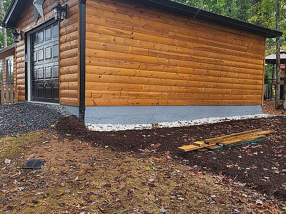 Log cabin, walls wood and wood flooring throughout. Upgrades of granite special design, appliances, bathroom finishes, light fixtures inside and outside. Facets are Delta with a lifetime warranty. Pantry cabinet added to kitchen. Upgraded fans through out home. Finished porch with tile floor and mini split. Screen porch between porch and detached garage 19 x 24. Outside has a wooden fenced area with turf grass as a dog run area. Backyard has raised tiled grilling area. Completely landscaped yard. Parking in the front of the house can accommodate 4 or more cars. Then another entry for the garage for 1 car but more parking space up to the garage. That is plenty of space for party events.