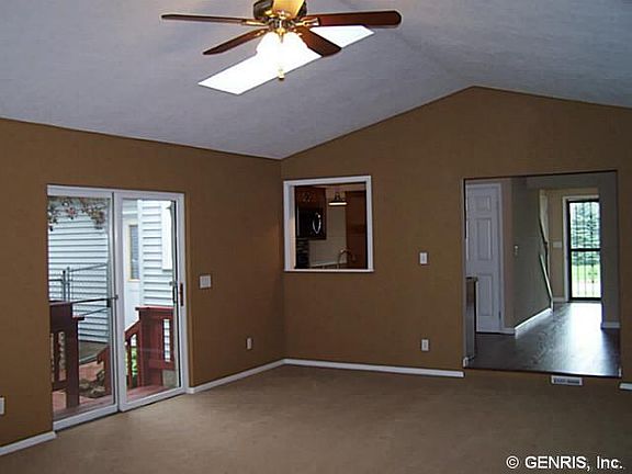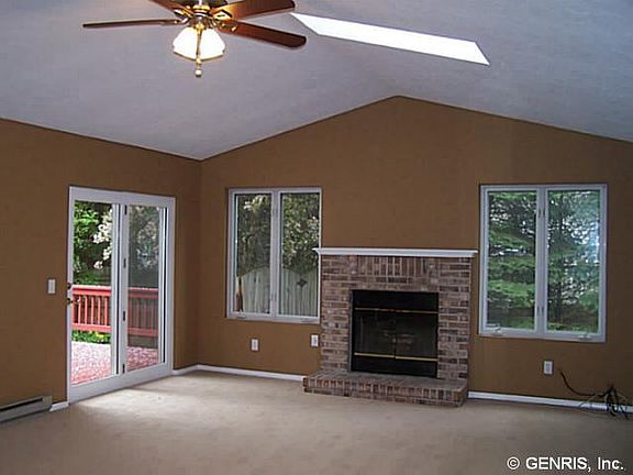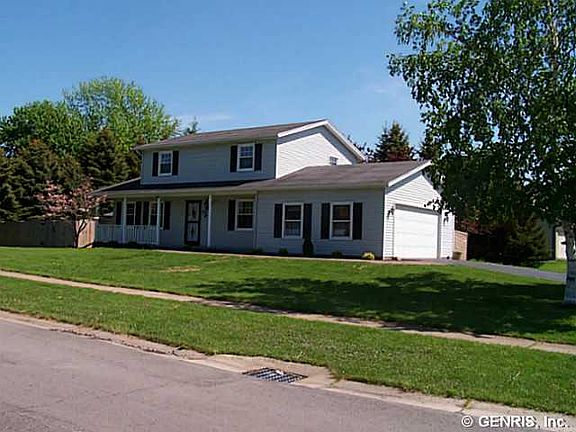 WOW! Completely redone colonial in Quiet Greece neighborhood. Great Space in a Kitchen that has New Wood Cabinets, counters and S/S Appliances. New Carpeting in Huge Great room with Cath ceilings, skylights & Fireplace. Atrium door leads to Wood deck in private partially fenced yard. 1st flr Bed w/bath perfect for in-law or teen suite. Separate living room provides privacy. New laminate flooring through out first floor. Oak rail on stairway leads to 2nd flr w/ 3 Beds & Full bath. Master bed has walk-in closet. New carpeting Through out! Roof replaced in 07, A/C in 14.