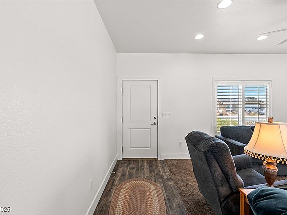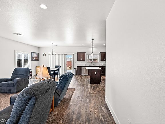 This charming ~1,673-square-foot home on a third of an acre offers 3 bedrooms, 2 bathrooms, and a 3-car garage with a water softener installed. The backyard includes an RV parking spot with hookups, a concrete sidewalk running the perimeter to keep the floors clean, and a block wall enclosure to provide privacy. A full-length back patio is perfect for outdoor relaxation, complemented by mature fruit trees. Inside, the kitchen boasts stainless steel appliances and quartz countertops, while recessed lighting and shutters add style throughout. The home is outfitted with luxury vinyl plank flooring in the living areas and plush carpeting in the bedrooms. The primary bedroom includes a spacious walk-in closet, providing ample storage. This home combines modern amenities with thoughtful details, making it a perfect place to relax and entertain.