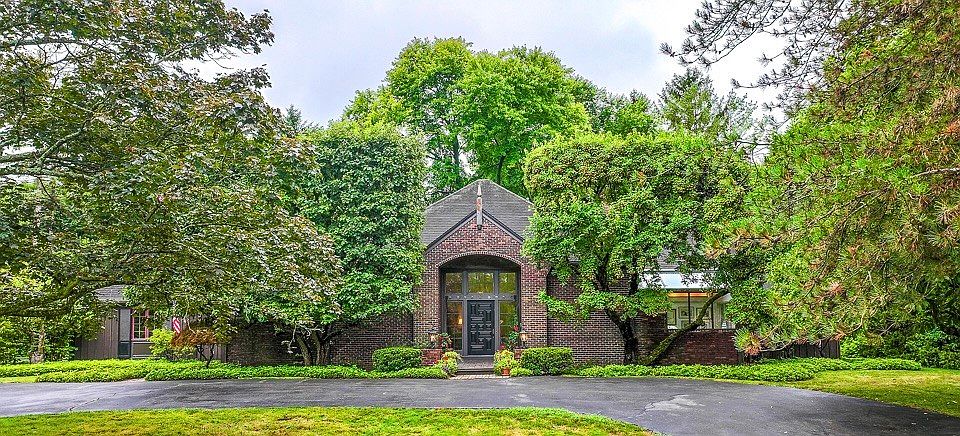 Country Club Estate. A castle drawbridge–style entrance & imposing front door with copper accents, flanked by pillar lanterns & soaring windows, sets the stage for this dramatic, exquisite Garrett-built brick ranch. Inside, a spacious slate foyer with a massive wrought-iron lantern chandelier opens to an uber-grand formal living room with 12’6” ceilings, crown moldings, hardwood floors & a monumental wood-burning fireplace. A trio of towering French doors with transoms flood the living/dining area with light & open to a sweeping slate patio bordered by a low brick wall, perfect for morning coffee. The flowing floor plan continues to the dining room, connecting seamlessly to the chef’s kitchen through a classic butler’s swinging door. The kitchen features a granite-topped island with surface grill, granite counters, peninsula with seating, abundant cabinetry, gas stove, built-in oven, LG refrigerator, pantry & spice cabinet. A pass-through window opens to the Florida/breakfast room with brick accent wall, sunlit atrium windows, & terra-cotta flooring. Access to the side door, 2-car garage & a hallway of lit storage makes entertaining effortless. Two extraordinary wings offer privacy: the family/guest wing has 2 ensuite bedrooms & a laundry room with double sink, cabinetry, craft table & ironing station. The serene premiere suite wing features oversized windows, French doors to the patio, dual dressing areas, extensive closets, 2 baths with tiled showers (one with soaking tub) & a vintage-style paneled oval office with soaring ceilings, built-in lit desk & floor-to-ceiling bookshelves. Additional spaces include a family room with built-ins, uplighting, tray ceiling & sun-filled atrium office. Powder room, full unfinished lower level & partial pull-down attic provide versatility. Set on beautifully landscaped grounds with mature trees & shrubs including Japanese & American maples & rhododendrons, within a private, sought-after neighborhood near schools, shopping, recreation & expressways, with a wide circular driveway, this estate is ready for your personal touches to create a one-of-a-kind oasis. Delayed negotiations, Aug. 26@9am. Form on file. SF per seller.