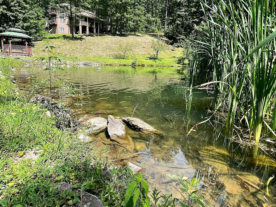 Private paradise with almost 8 acres of rolling, wooded land, spring fed pond with gazebo, paved driveway and peace and quiet backing up to over 90,000 acres of United States Forest Service for your backyard. Sturdy and BIG 3/3 brick beauty with room to share for in-law quarters if needed. 2 car basement garage plus a carport up top for parking with easy entry to the main floor which includes an entry way, 2 guest bedrooms, main floor bath and a fabulous great room/kitchen/dining room with stone wood burning fireplace. Plenty of storage throughout the home. Master suite upstairs is huge and very private offering a walk-in closet and private sitting area plus balcony overlooking the pond. The basement area has a bonus room along with a full bath and is plumbed for a kitchenette in the living area. Big and plentiful covered porch wraps around for grilling and chilling.