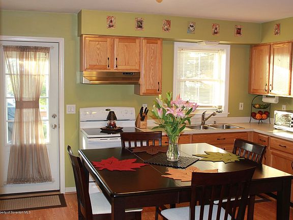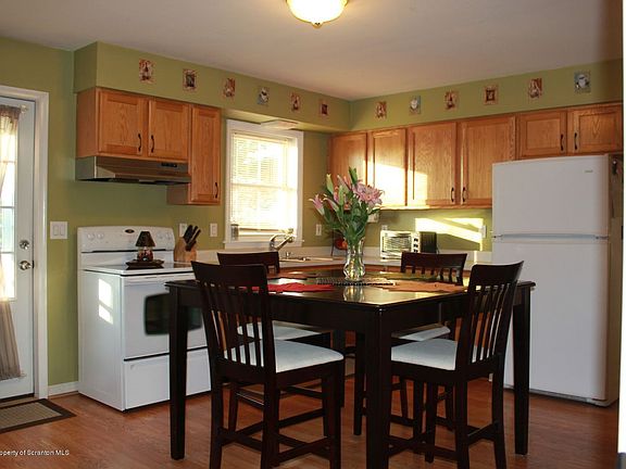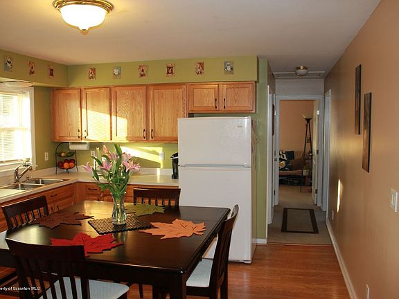 Affordable impeccably maintained immaculate town home. Completely re-done energy efficient gas heat/air. On demand tankless hot water. 2 bedrooms 1 bath, eat in kitchen, 1st fl laundry expansive deck.New floors,kitchen,bath,storm doors. Convenient location to Scranton and Wilkes Barre., Baths: 1 Bath Lev 1,Modern, Beds: 1 Bed 1st,Mstr 1st, SqFt Fin - Main: 1004.00, SqFt Fin - 3rd: 0.00, Tax Information: Available, Modern Kitchen: Y, Avg. Heat Cost/Yr $ - 700, SqFt Fin - 2nd: 0.00, Additional Info: 14x34x14high garage for RV or car enthusiast, 11x34 garage w/heat&air. Deck 12x34.