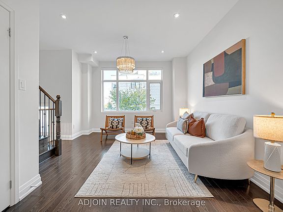 Stunning Double-Car Garage Townhouse In Prime Unionville. Experience luxury living in this beautifully renovated townhouse offering approximately 2,500 sq. ft. of spacious comfort with 9-ft ceilings throughout. This elegant home features hardwood floors, pot lights, and modern light fixtures for a bright, contemporary feel.Each of the three generous bedrooms boasts its own ensuite bathroom, providing ultimate privacy and convenience. The primary suite includes a sitting area and a walkout terrace-perfect for morning coffee or evening relaxation.An oak staircase with iron pickets adds a touch of sophistication, while an elevator-sized storage room on each level offers future flexibility for an elevator installation. Enjoy two large balconies with east and west views, bringing in natural light all day long.Recently painted and featuring new hardwood floors in all bedrooms, this home is move-in ready! Top-Rated School Zone: Unionville High School & Coledale Public School. Easy access to Hwy 404 & 407, walking distance to Hwy 7, Whole Foods Plaza, York University Markham Campus, Unionville Main Street, and scenic Toogood Pond.Make this exquisite townhouse your new home and embark on life's next beautiful chapter in Unionville!