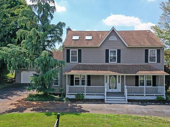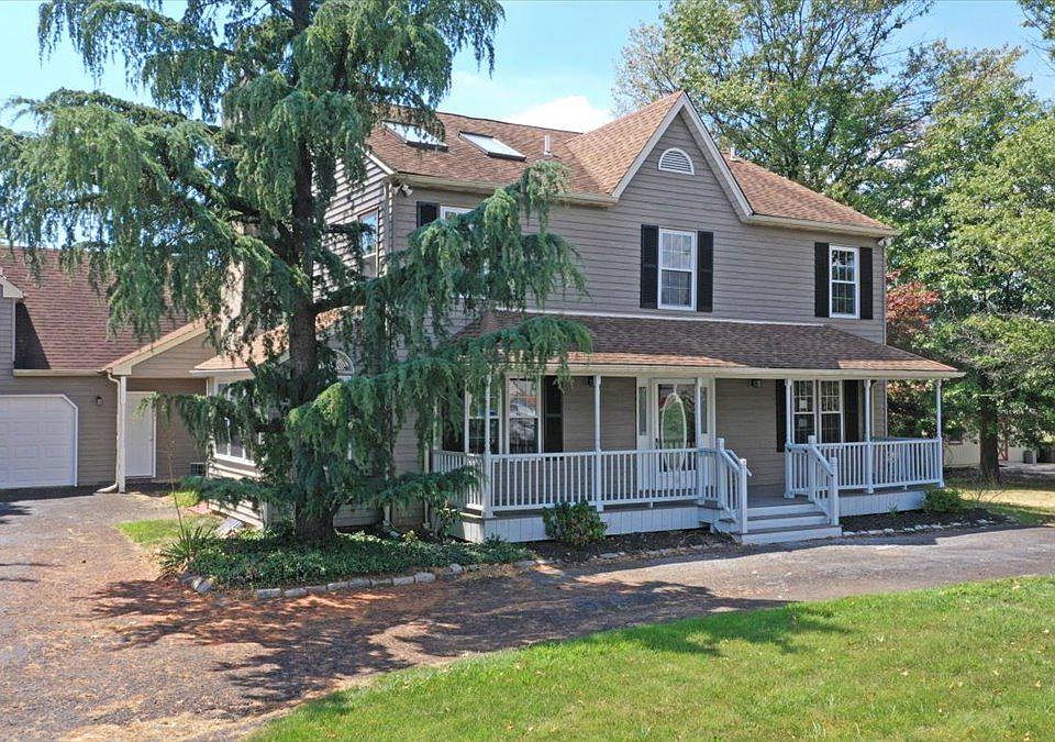 A classic style Victorian home in Ivyland Boro. The circular drive passes the front and joins the abundant driveway in front of the massive 2 car garage. Enter the main home through the covered front porch. To the right of the foyer the traditional Dining Room opens to the Living Room with side facing bay window. To the left of the foyer the modern ceramic tile floor flows in the large breakfast room and newly remodeled kitchen. The natural light brightens this area. The kitchen boasts Java shaker style cabinets, granite counter tops, subway tile back splash, stainless steel appliances, and LED recessed lights. Next wander into the Great Room and imagine relaxing in front on the fireplace below the ceiling fan and LED recessed lights. The hall and half bath circle you back to the foyer while passing the Living Room and Dining Room. Upstairs find an impressive Primary bedroom with cathedral ceiling, raised sitting area adorned with skylights and a fireplace. This opens to the upper finished loft suitable for storage or extra closet space. The attractive Primary Bath was just remodeled with gray tone ceramic tile floor, vanity and subway tile shower stall with glass shower door. Down the hall find 2 additional generous bedrooms with cathedral ceilings and ceiling fans with lights. The full hall bathroom was also just remodeled with ceramic tile floor and white finishes. The 2nd floor laundry is a pleasant bonus. The full unfinished basement completes the main house. Out the back door off of the Great Room the journey continues. There is a huge enclosed porch with surprises through each door. The door to the right leads to the deck and back yard. The back yard overlooks open municipal space/fields. The door to the left leads to the driveway and front of the garage and entrance to the In-Law suite above the garage. That’s correct; a separate living space with 2nd kitchen and additional bath. There is also inside access off of the enclosed porch that leads to the garage and In-Law Suite. Most of the windows are newly replaced.