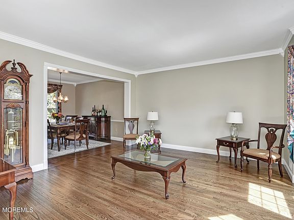 Sophistication abounds this stately 2 story colonial built by Matzel & Mumford nestled along the tree lined streets of pristine High Pointe Estates. Foyer leading to LR, DR, Eat In Kitchen with quartz counters, tile floors, beautiful backsplash. Step down to Sunken Family room stone fireplace. Newer sliders leading to serene private yard. 2nd level includes newer mstr. bdrm w/ Cthrl ceilings. Abundant sun, 9 ft. ceilings, neutral paint colors. Situated on private flat wooded lot w/various trees along with mature grounds! Located near easiest access from all major highways, bus stop, train, restaurants & recreational activities. With the Hustle & Bustle of everyday life why not enjoy a cup of coffee in yard or in family room and make this your tranquil retreat away from wor