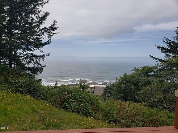 Secluded hillside home outside the city limits of Yachats. Large .43 of an acre