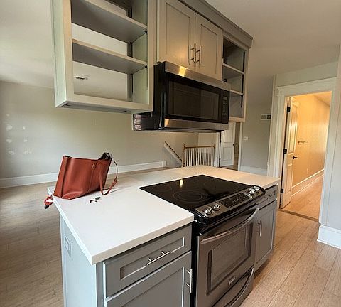 Freshly painted and newly renovated one bedroom. one bath second floor apartment located within walking distance of all downtown shops, yoga studio, coffee shops, pubs and restaurants in beautiful downtown Westminster! The kitchen dining and living room areas are an open floor plan which are perfect for entertaining. This apartment is painted a nice, light neutral gray and the windows allow plenty of natural sunlight. The kitchen counters are Quartz and the gray kitchen cabinets are custom made cabinets. One cabinet has glass panes for displaying fine China and has led lights. The kitchen includes a stainless-steel range, refrigerator, dishwasher and microwave. The island in the kitchen has additional cabinet space. The entire apartment has beautiful Bamboo floors. There is a ceiling fan in the living room and recess lighting throughout the rest of the apartment. The bedroom closet has Wainscot doors. The bathroom is a European style with a partial glass privacy wall. The bathroom has a large walk-in shower, toilet and ceramic wall sink with a small cabinet underneath. There are two more additional closets entering the bathroom/laundry area. This unit has a full-size stackable washer and dryer. Central air conditioning and heat pump. $1,695.00 per month $1,695.00 security deposit 18-month lease is required. Application fee is required. Owner pays for trash pick-up. Tenant is responsible for water, sewer and electric. There is no parking on site but there is a municipal lot less than one block away that tenant can obtain a permit to park. There is a spot for loading and unloading of groceries or for move-in. NO DOGS PLEASE-NO SMOKING! Owner may allow 1-2 cats with an additional pet deposit. Renter's Insurance is required. 18-month lease required. Application fee is required.