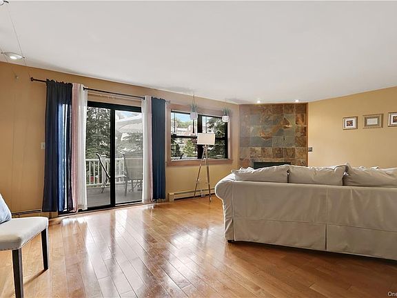 Stylish, contemporary living in the fabulous Village of Ossining. Walk to town from this move in ready home. No reason to rent when you can buy this attached single family that lives LARGE. The open floor plan flows seamlessly from the Kitchen, dining room and living room with beautiful slate fireplace. Entertaining at its best. Glass sliders fill the area with natural sunlight and lead to a brand new deck. The perfect place to enjoy your morning coffee or dinner alfresco. The contemporary staircase w a wall of windows leads to the 2nd floor bedrooms. The massive master suite has vaulted ceilings, the loft reached by a spiral staircase is the perfect home office. The renovated master bath features a Jacuzzi and skylight. 2 additional bedrooms and a hall bath complete the 2nd floor. The added bonus is the fully finished lower level with plenty of room for a home gym,office, entertainment space, and large laundry room. Sliders lead to a stone patio for additional outdoor space. Perfect