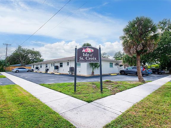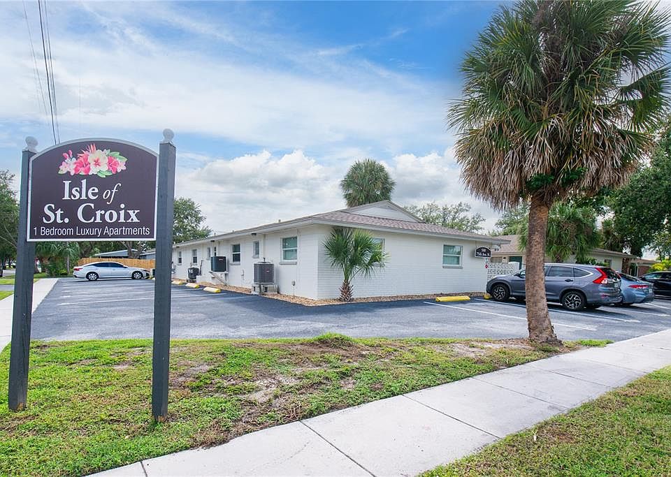 The Isle of St. Croix Apartments is a rare investment opportunity in the highly desirable Fossil Park area of St. Petersburg. This well-maintained, single-story community consists of 10 spacious 1BR/1BA units of approximately 600 SF each, across three concrete block buildings inclusive of a shared laundry room. Each apartment features a large living area, eat-in kitchen with shaker cabinets, granite countertops, breakfast bar, oversized bedroom with walk-in closet, and a private patio space. Ideally located just minutes from Downtown St. Pete, I-275, and the vibrant 4th Street corridor, offering convenient access to premier shopping, dining, and employment centers. Tenants pay electric and water/sewer (billed back), while the owner covers trash, lawn and pest service. Fully occupied with historically low vacancy, this property is a strong turnkey multifamily investment in a prime central location.
