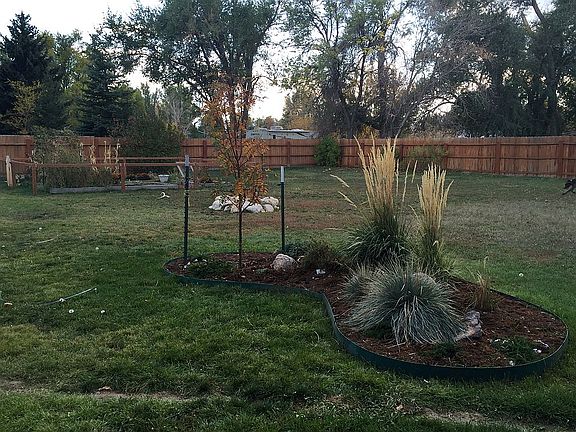 3 Bedroom, 1 bath Attached 2-car heated/air conditioned garage Central air Large kitchen/dining area Microwave, refrigerator, stove, washer and dryer included. Remodeled bathroom w/ jetted tub, granite tub deck, tile shower New windows installed Large living room w/ recessed lighting Large lot (0.45 acres) w/ 6 ft cedar privacy fence New 10 x 16 ft storage shed w/ loft for extra storage. Plenty of room for RV parking or potential build of a shop. Underground sprinkler system Mature trees and landscaping Raised and fenced garden beds New pergola covering stamped concrete patio One block from blue ribbon Meadowlark Elementary school Close to walking paths and dog park