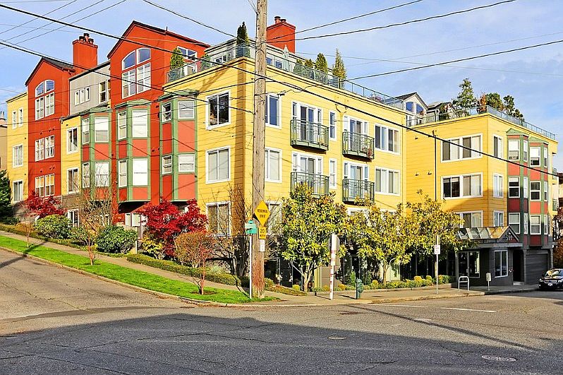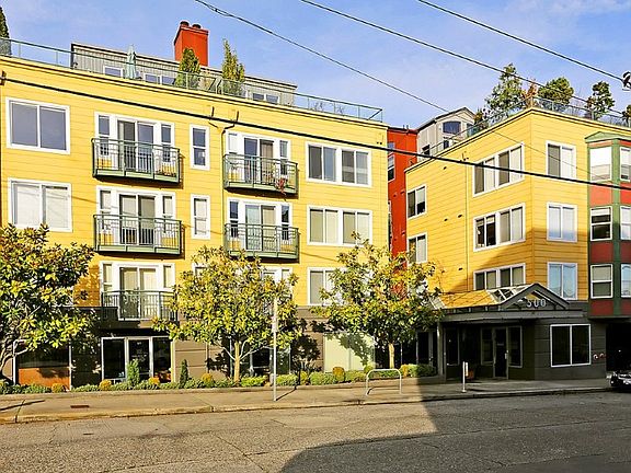 Immaculate one bedrm condo, walkable to South Lake Union & lower Queen Anne. Bright, functional space in a secure, well-managed building w/covered parking & elevator access. Living/dining rm have great light & a Juliet balcony w/peek-a-boo city views. Open kitchen has a tiled bistro bar w/new lighting. Master bedrm has large walk-in closet. New carpet & paint throughout. Shops, restaurants, theaters, museums & buses are just steps away. EZ walk to Amazon & Gates Fdn. A great place to call home!