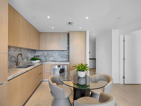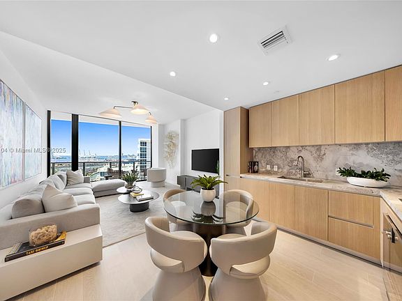 This sophisticated 1-bedroom, 1.5-bath residence at Five Park combines modern elegance with comfort and practicality. From the expansive terrace, take in panoramic views of Biscayne Beach and Miami Skyline. Soaring 10-foot ceilings, floor-to-ceiling windows, and an open layout create an airy, light-filled ambiance. The chef's kitchen is appointed with Gaggenau appliances, custom oak cabinetry, and quartzite countertops. The primary bath showcases marble flooring, walls, and vanity. Five ParkMiami Beach's newest luxury iconoffers residents an unparalleled lifestyle with premier amenities, including a bayfront full-service pool deck, cutting-edge fitness and wellness center, and an exclusive private beach club. Beautifully furnished.