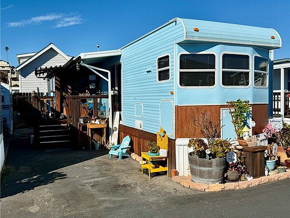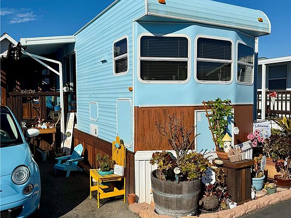 Welcome to the beautiful West Coast of Morro Bay California! Want to live where you can relax your mind, body and soul without killing the bank account? You have found your new place to call home! This super cute 1 bedroom 1 bath home (or home away from home) is awaiting it's new owners. The original owner was a wood worker, he added so many personal touches that this is truly one of a kind. New exterior paint 2024, this sweet home has all of the conveniences you need, while the location is the most amazing short distance to our gorgeous west coast ocean. Cook full meals in your cozy kitchen with nearly new appliances, watch a movie and relax inside in the comfort of your spacious living room, bbq outside, or take a walk to the beach! This 55+ community has so much to offer. The bedroom has a murphy bed with so much storage, even extra underneath the bed! Spacious shower with bench seat, comfy futon in the living room that doubles as extra sleeping space and a heater to keep you warm on those cooler coastal days and nights. Outside you will be greeted by the cheery flowers, a beautiful wood awning and extra storage space under the decking. EXTRA ROOM? Yes! There is a bonus space of a sunroom! This space also includes your own parking space and visitors have undesignated areas close for convenience. The park has so much to offer-laundry onsite, large clubhouse with a kitchen & party space, bingo & card games, community get togethers to meet your neighbors, walks to the beach, cable TV available, views of Morro Rock!