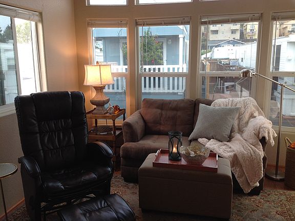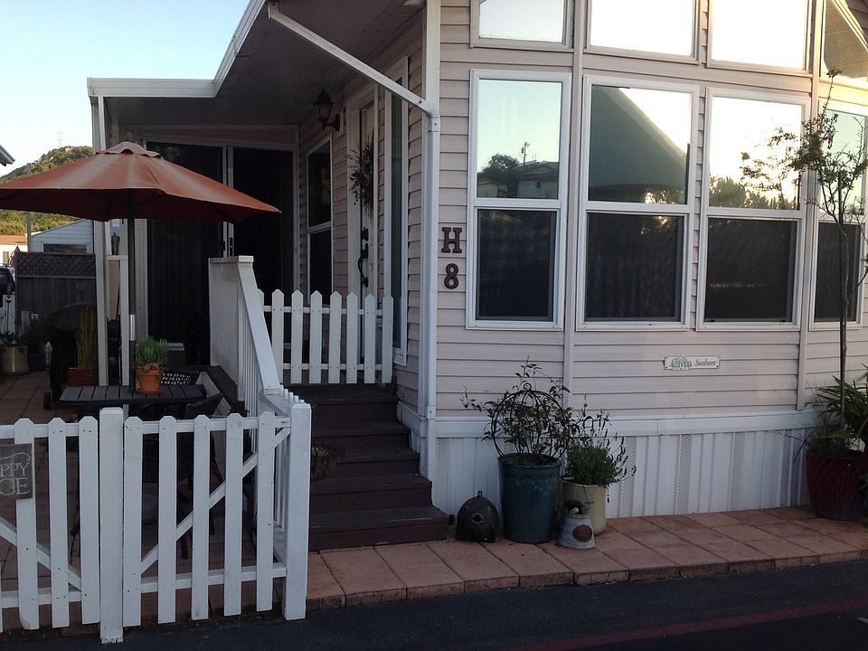 Just blocks from the beach, this adorable 2004 Cavco Park Model Mobile Home has been a haven for us during the hot and hectic times in the valley. It is located in the (55 and older) community of Silver City, 500 Atascadero Rd, Space H8, just off Highway One, which offers easy access to many of the Central Coast's popular destinations. You can live here full time or use it as your own private vacation home. No check in time -- no check out time! It has a cozy living and dining area, one bedroom, one bathroom, a sleeping loft, extra office space, storage shed with washer and dryer, a small fenced porch and patio. Most furnishings are included and all kitchen appliances are relatively new. The park space rent is currently approx. $600 per month and we have reserved parking available for an additional fee. (No subrenting allowed). This is a special little unit -- so cute and ready for you to move in!