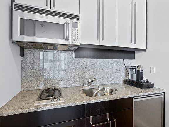 Welcome to this luxurious studio in the Residences at The InterContinental. This home at Boston Waterfront's premier full-service building features city views and is your perfect pied-a-terre. Enjoy the breath taking sunsets from its oversized windows offering views of the iconic Financial District. With high ceilings, hardwood floors, and a custom king-sized Murphy bed leaving plenty of room for entertaining guests for drinks. This open studio offers a modern kitchenette which comes complete with granite countertops, stainless steel mini-fridge, gas cooktop, microwave, breakfast bar, and beautiful Rosario Cabinetry. To round out this amazing home, the bathroom features a large soaking tub and ample closet space. All the services of a 5 star hotel: room service, gym, valet garage parking, 24 hour concierge and a doorman. Residents also enjoy easy access to the Seaport District, South Station and Boston's major highways for easy commute out of the city.