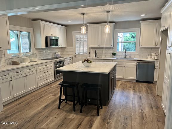 A must-see custom home in Farragut! All your updates are done in this large single story home. This contemporary ranch home offers a open concept with many special touches. Large family room with two way stone fireplace & extra sitting area. Plus another living space, could be used for several things. All new kitchen w/new white soft close cabinets, slab quartz counters, dark gray island, subway backsplash, high end SS appliances. Owner's suite all new custom design. All new oversized walk-in shower, double sinks, walk-in closet with built-in storage. Home offers 4 total bedrooms, new interior & exterior paint, new flooring, baseboards, doors, hardware, lighting, & new windows. There's even a atrium. Backyard has pool, patio, lot is very private. Owner is licensed Realtor in Tennessee.