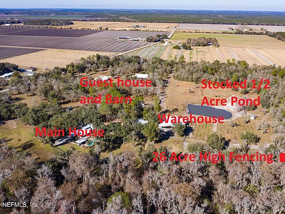 Upon entering through the gates of this 46+ acre property you are greeted by the beautiful drive in passing majestic oak trees and wide-open spaces on the way to the main house. The property consists of a main house with pool, guest house, barn, large warehouse, multiple pastures and fenced in areas, a creek, a large pond, and more! The main house is straight out of Southern Living with its full-length covered porch that wraps around to the northern side of the home and offers 4bd/3.5 ba. and a spacious 3,488 sq. ft. There are hardwood floors throughout the main living area, a living room and family room both with gas fireplaces, an updated kitchen with granite countertops and gas range island, and all bathrooms have been recently redone.