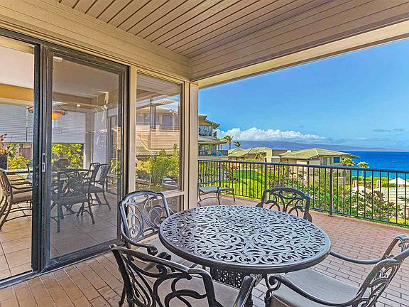 Excellent oceanfront ground floor unit with views of the blue Pacific Ocean from living room, dining room, lanai and bedroom. This single level unit is located in a a 3 unit building and it is one of the vert few 1bd units that has 2 full bathrooms. Very private large lanai, sheltered from the wind, allowing you to enjoy al fresco dinners. Unit has been upgraded with granite counter tops, tile floors and all new cabinets throughout. For more details, a 3D tour is available. Short distance to the Kapalua boardwalk and trail, adjacent to Oneloa Bay and Kapalua Bay. This low density resort allows you to easily access world class restaurants and spa. This unit is in Outrigger rental program, please inquire for more details.