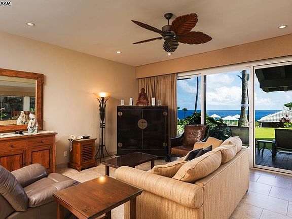 Prime oceanfront location in The Bay Villas. Highly desirable corner town-home style unit beautifully upgraded in 2008. Casually elegant with modern Balinese and Asian interiors. Second full bath on ground floor. Well located close to pool / BBQ area. Walk out onto a spacious lawn and only a short walk to either Kapalua Bay or Oneloa Bay. All Kapalua Resort amenities included. Land Tenure: Fee Simple, Agent License #: RB-15747