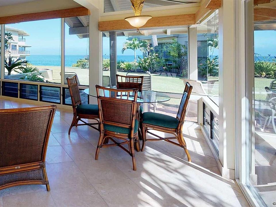 Ground floor Townhouse End Unit is in a great location near Kapalua bay and The Montage. Beautifully furnished with new sofa and love seat, new occasional tables, TV and accessories, pristine and well maintained, fully equipped with all the comforts of home! This oceanfront unit features upgrades that include a full bath downstairs, air-conditioning, enclosed loft creating a private Master Bedroom, and an extended Living Room.