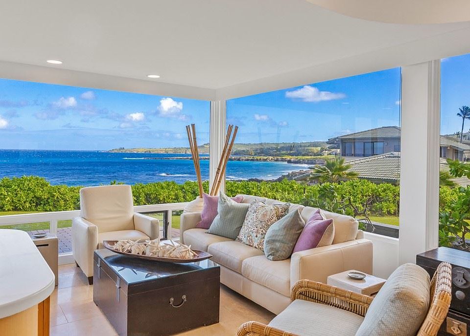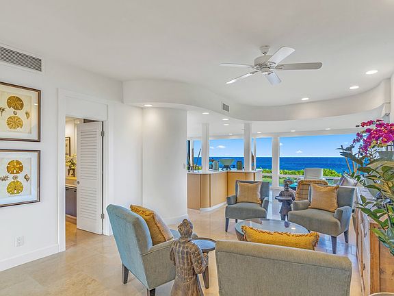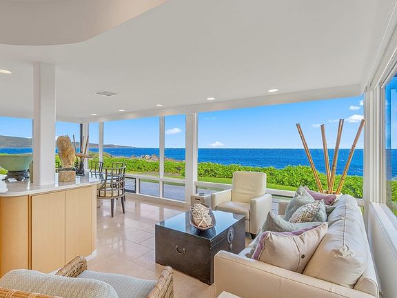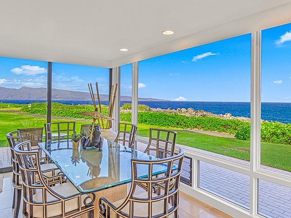 For the first time in 20 years, this incredible 2 bedroom, 3 bath, expanded Kapalua Bay Villa 34 G2, is offered for sale. With a stunning, one of a kind location and ocean views that can not be duplicated, you will be immediately captivated. Perched on an elevated lot, with an approx. 220 degrees of unobstructed white water views of Oneloa Bay and beach, the 18th hole of the famed Plantation Golf Course, DT Fleming Beach, and the Island of Molokai, this location captures the magic that is Kapalua. Nestled between The Montage Hotel at Kapalua Bay and The Ritz Carlton Hotel at Fleming Beach, this single level Villa has direct "walk out" access to the ocean and surrounding beaches. The light and airy living room, dining room and adjoining open kitchen, with 16"x 24" ivory travertine floors, allows for ease of living, designed with furnishings inspired with an island vibe. Hand selected unique accessories acquired from travels, complement the overall design. The surrounding outdoor lanais of this Villa expand your entertaining choices or can be enjoyed to simply take in the sun and lounge...The master bedroom with custom cabinetry highlighting a collection of shells, also has a 52" flat screen, hiding behind cabinet doors. Wake up to the ocean in the master bedroom's cozy sitting area, and enjoy breakfast at a pedestal table with a view, which can also double as a desk or place to play cards or games. The custom en-suite master bathroom has a Spa like feeling with a freestanding elevated bathtub to take in the view, a doorless walk in shower with mother of pearl, inlaid mosaic walls, dual vessel sinks on a custom designed cabinet with Quartz countertops, and closets with plantation shutter doors. The roomy guest room on the other side of the Villa offers privacy with its own garden door out to the ocean and a lanai for morning coffee or an evening glass of wine. The guest's en-suite bathroom with dual vessel sinks and Quartz countertops, a walk in sunken tub or shower, and an incredible view as well, is ideal for quests, or family. The 3rd bathroom has a hidden full size washer/dryer behind plantation louvered doors and a shower for extra guests. Brand new Dual central AC. The Kapalua Bay Villa Resort is perfectly situated, tucked behind gates, with tennis courts, 3 beautiful pools and close to restaurants, a general store, a church and beautiful, expansive grounds with walking trails. Enjoy a day at the Kapalua Spa or play golf at The Bay Course, close by.....the choices are endless. Come see this incredible view and location from the larger than life, wrap around windows of this special Kapalua Bay Villa 34 G2....you might even pinch yourself, to make sure it's real!