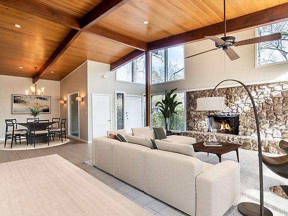 Mid-Century Modern Oasis in the heart of midtown. Vaulted Wood Ceilings. Lots of windows and natural light. 2 Living Spaces. Master on one side and 2 Additional Bedrooms on other side of the house. Kitchen opens to the Den or second Living space. Wood burning Fireplace. Two covered patios. Fully fenced yard. 2 car carport with additional parking. Huge Closets and lots of additional storage. Workshop and/or garden shed. Unfurnished. *Home has been staged virtually* Renter is responsible for all utilities