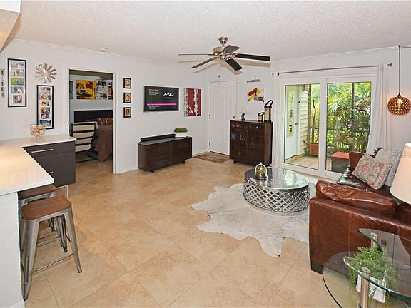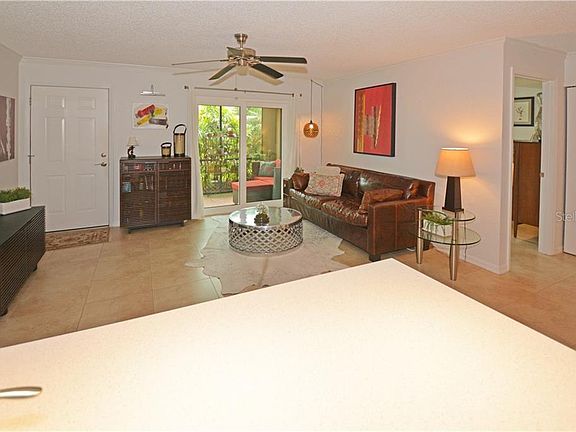 Resort style living! Beautiful 2/2 move in ready in a gated community! Ground floor level, end unit, split plan with completely updated kitchen. New extended kitchen counter top, new cabinets and newly updated appliances to include stainless frig and double oven. Newer windows and slider that extend out to a screened in porch surrounded by mature landscaping. This property was meticulously maintained and it shows. The property features a fishing pier, tennis courts, volleyball court, putting green, various exercise stations, fitness center and an office with wifi-tv. You will constantly see neighbors out walking with their pets and there's plenty of pet stations. The pool is the type you would see at a resort, surrounded by pergolas with a fountain and BBQ grills. The lake is stocked with fish and fishing is encouraged! There is on site staff six days a week with on call maintenance. This wont last, schedule your viewing today!