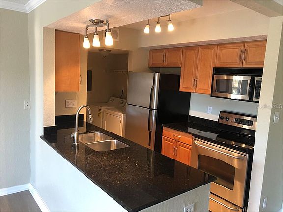 Beautifully updated two bedroom two bathroom at Bal Harbour on second floor. Kitchen features granite countertops and stainless steel appliances (including dishwasher & microwave) and overlooks the living room. Washer & dryer units in utility area. Master bedroom features private bathroom and walk in closet. Second bedroom also has a walk in closet and view of the pond. Sliding glass doors open out to screened in porch with additional storage closet. New vinyl flooring, paint, with multiple closets, ceiling fans, and blinds throughout the unit. Water, sewer, trash included in rent. One assigned covered carport spot. This gated community has a great deal of amenities to offer including a swimming pool, fitness center, clubhouse, tennis courts, volleyball net, a car care area, fishing dock, mature landscaping, and scenic pathways surrounding the pond. Application fee is $50 per adult, additional HOA application and $100 fee required prior to move in. HOA approval is a minimum of 7 days and requires a minimum of 650 credit score. 1 pet under 50 lbs may be allowed, no aggressive breeds. Additional costs may apply. Section 8 vouchers not accepted. Measurments to be verified. SEE REMARKS.