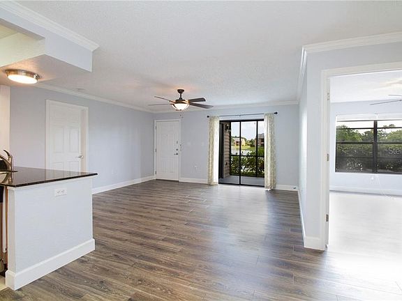 Welcome to this beautifully maintained and move in ready home! Seldom available, a 2 bedroom home on the lake! A true split floor plan with each bedroom having lake views. Great storage with each bedroom having a walk in closet, a large laundry room and storage in the porch. Updated features include, a new air conditioning unit, a new microwave, new flooring and baseboards throughout, freshly painted and many new fixtures! Relax on the screen enclosed porch with views of the lake. This home comes with an assigned covered parking place and the community has plenty of guest parking. This beautiful home is located in a Gated Resort Style Community with a gorgeous clubhouse, a swimming pool, a fully stocked 7 acre lake, a dock, a fitness center, tennis, sand volleyball, a putting green, walking trails, a car wash area and a pet area! A super convenient location with easy access to Clearwater, the beaches, Tampa and St. Pete. Come view today before it is too late!
