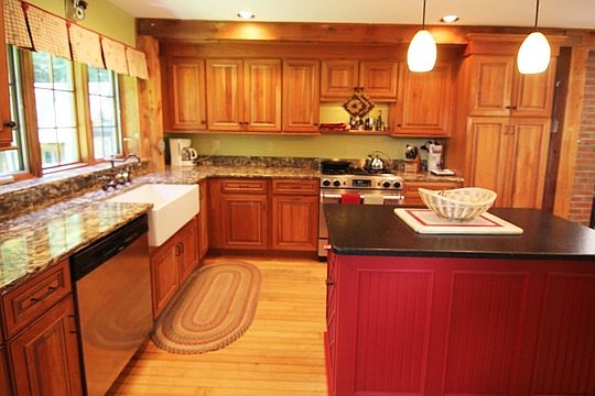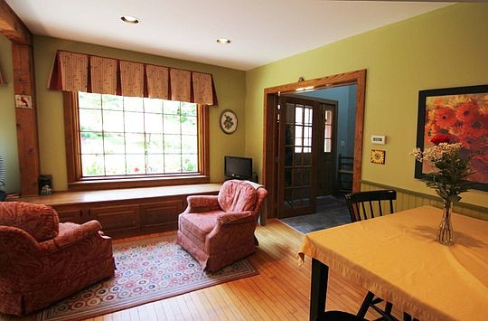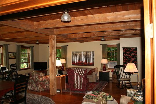 Check out this Inviting Leyden Country Property! Features 9 Rms, 4 BR, 2 Full Baths, 2782 sq. ft. Contemporary Post+ Beam on just over 5 acres of land with manicured lawn and flower beds. Wonderful deck & granite patio with room to entertain. Also included on property is a small barn, storage building and wood shed. Chef's quality kitchen with stone countertops, plus island & cherry cabinets, stainless steel appliances. Plus a spacious pantry with a second sink & gas range & skylight. Wide pine flooring, hardwood and tile flooring throughout the house. Formal dining rm opened to living rm with a stunning brick fireplace. Spacious bedrooms with built ins and lots of closet space. Nature lover location just 1+ mile to Guilford Pond In Vt. $395,000