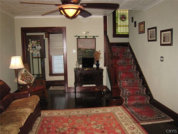 We welcome you to our home at 500 Bryant Avenue located in the Tipperary Hill neighborhood. You will enter through the front open porch and be excited to continue your tour. You will walk into the front living room that is spacious and nicely connects to the dining room. The large dining room is just perfect for entertainment and holiday gatherings. The kitchen is showcasing stainless steel appliances, an eat-in kitchen space, and a convenient door to the backyard. The first floor includes a 1/2 bath too. As you continue the charm and character of the staircase banister will certainly spark your interest. A view of a beautiful stainglass window will carry your excitement to the second floor. The second floor includes 3 bedrooms, a full bathroom, and the hardwood floors carry throughout. The master bedroom has the special treat of a generous master bedroom walk-in closet. The backyard offers a quiet deck space to recreate and relax. The bonus of off street parking, garage, vinyl siding, and basement glass blocks windows are just some of the improvements that make this property special. 2022-10-11