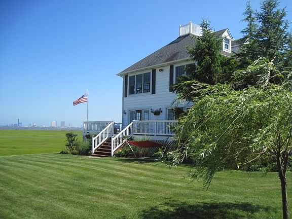 Once in a lifetime opportunity to own this beautiful waterfront property on the New Jersey coast. Magnificent, Georgian colonial, bayfront home is uniquely situated high at the end of a peninsula with panoramic bayfront views. This home is set in a private area overlooking miles of beautiful wetlands and wildlife of Absecon Bay. Most spectacular views of the Atlantic City skyline, especially at night! This home boasts breathtaking water views from every window in the house. This 3 bedroom, 2.5 bath, 3,500 square foot home, custom built in 1994, has been impeccably maintained by the original owners. The grand entrance to this resort-like home boasts a 16 foot high ceiling and curved staircase. The main floor has a large living room, formal dining room, study with built in bookcases and family room with cathedral ceiling and gas fireplace. Gourmet kitchen, with breakfast area, is equipped with high end appliances and granite countertops. The second floor master suite is equipped with Jacuzzi tub for two and walk in closet. Master bedroom offers tranquil views of the sunrise over the bay. Loft area on second floor is open to family room below and offers bay views from a large Palladian window. Newly refinished hardwood floors throughout with wall to wall carpet in the family room and bedrooms. Tile floors in baths and laundry room. Gas heat, new HVAC system on second floor, new energy efficient hot water heater, and full unfinished basement. Enjoy 800 square feet of wrap around decking, maximizing the panoramic water views. Beautifully landscaped with irrigation system, brick walkway and driveway. This home is located in a high elevation area. The first floor is 18 feet above sea level.
