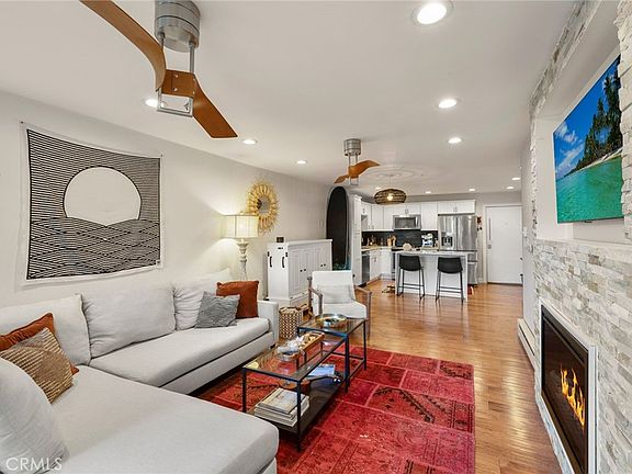 This spacious one-bedroom condo is located in the prestigious gated community of Versailles in Newport Beach. The home has been thoughtfully upgraded with a washer and dryer in the unit (which is a rare find in this community). It features stainless steel appliances, quartz countertops in the kitchen and bathroom, luxurious laminate flooring, and modern ceiling fans. The home also includes recessed lighting and a contemporary electric fireplace. The indoor laundry closet adds to the charm of this stylish beach bungalow. It has a private balcony and is just a short walk away from the beach, dining, shopping, and nightlife. Hoag Hospital is conveniently located nearby and is ranked as one of the best hospitals in Orange County. Residents can enjoy a range of resort-like HOA amenities, including a clubhouse with a full kitchen, sauna, gym, pool, spa, card room, and community center. Take advantage of the miles of sandy coastline by going for a refreshing bike ride or a leisurely walk down the peninsula. The gated underground parking garage is available for residents, while guests can park outside. Additionally, a community laundry facility in the basement near the elevator is only steps away from your unit if needed.