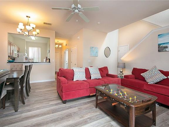Attention Investors & Owner Occupants! This Regal Palms Resort & Spa end unit townhouse with 4 bedrooms and 3.5 bathrooms, within 9 miles to Walt Disney World, is in a short term rental community with resort level, full service amenities, stay here while on vacation and alternate going to the theme parks, shopping or golfing then rent it when you are not here and earn income. You can also live here full time as an owner occupant! This end unit has four bedrooms and 3.5 baths and accommodates up to 8 guests, enjoy this vacation home decorated with a beach and Disney theme with a home away from home feeling. The resort has a swimming pool with lazy river, a spa, volleyball court, restaurant with bar and various activities offered throughout the day, fitness center, sand volley-ball, playground and so much more. The resort also offers Free Wi-Fi, free parking, family rooms and bar. This is NOT a Foreclosure, NOT a Short Sale. Seller has chosen to place the property in an upcoming online event. All Offers are welcome up to 72 hours prior to the event period. All properties are subject to a 5% buyer's premium so we priced it so you can add this on top. Don't wait for the online event to purchase the property and compete with others, you can buy right away. ASK for your Showing Today.