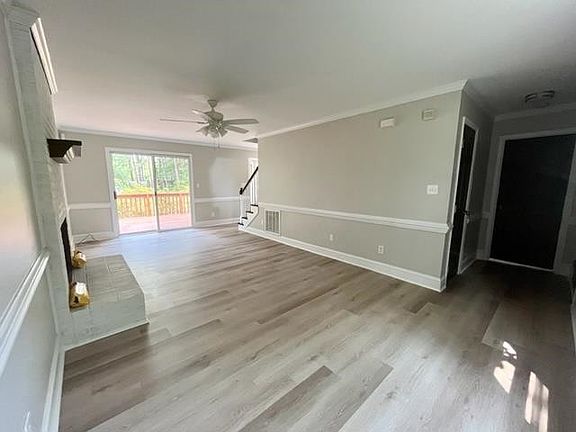 A must-see move-in-ready 3BR 2Bath, 2-story home, downstairs master and bath. The home has been completely renovated with new waterproof flooring, new carpet installed in bedrooms, fresh paint throughout the entire home, new butcher block countertops, refinished white kitchen cabinets, new kitchen backsplash, new stainless steel kitchen appliances, new hot water heater, updated bathrooms vanity cabinets, mirrors, and lights, all new ceiling fans, and light fixtures throughout the home, white washed wood fireplace, and updated repaired deck overlooking nice size backyard. This home has energy-efficient windows, Utilities: City Water, and Lights, no gas, and no HOA Dues. Great Knightdale location in Carrington Woods subdivision, home is within 3 to 5 minutes from Knightdale public schools, shopping centers, restaurants, and I-540, just minutes from downtown Raleigh.