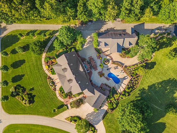 A masterpiece of craftsmanship, detail and style sum up this 5.6 acre estate complete with a main house, a guest house w/1br/1.5 baths, stocked pond, pool and spectacular sunsets. This custom built one owner home offers 10' ceilings, 5 bedrooms 6.5 baths ,open floor plan, cherry cabinets, granite countertops, central vac, masonry fireplace, many built ins, interior wood shutters, main floor owners suite and hardwood floors with inlay from a tobacco barn. The upstairs offers 2 large private bdrms, both with ensuite bath and great storage. The walk out basement is finished and offers a second living area complete with a stone fireplace, incredible built-ins, full kitchen, family room, 2 bdrms, 2 baths, and storage. Walk out to a covered patio and pool. The magnificent guest house offers a lodge-like setting. Built with all wood, it offers 1 bdrm w/loft and 1.5 baths, full kitchen and a stone fireplace. It also has a deck that overlooks the stocked pond with a fountain. The lodge also has a 2 car garage and a double carport. The main house has a generator that fully powers the entire home. This is truly a one of a kind property that has been completely maintained with excellence